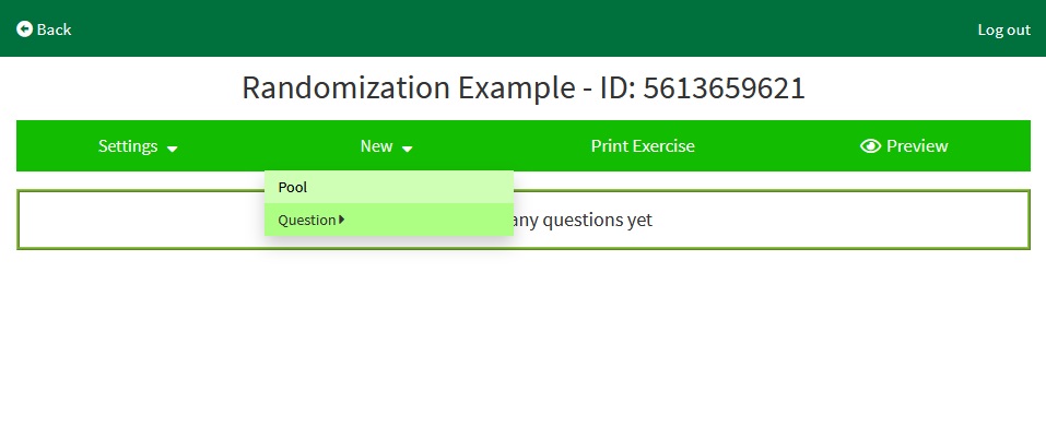 From here, you can preview the exercise to see how selecting 10 questions from a pool of 1 looks.